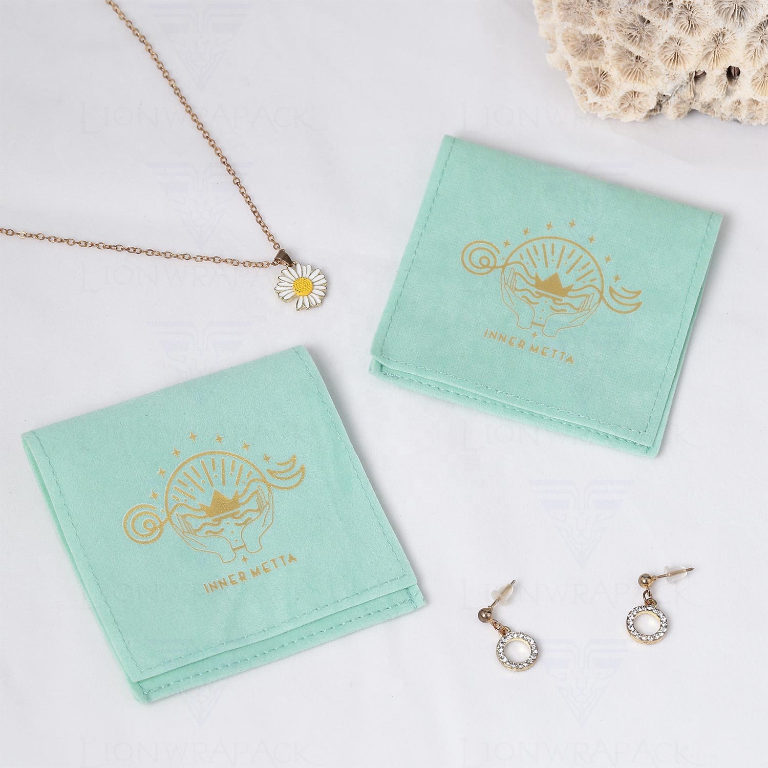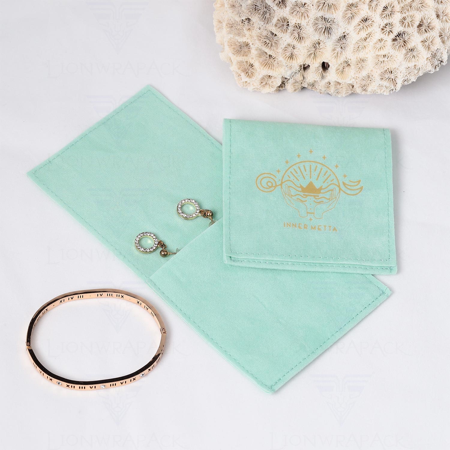 Hot sale luxury necklace bracelet jewellery packaging gift bag custom logo envelope flap velvet jewelry pouch