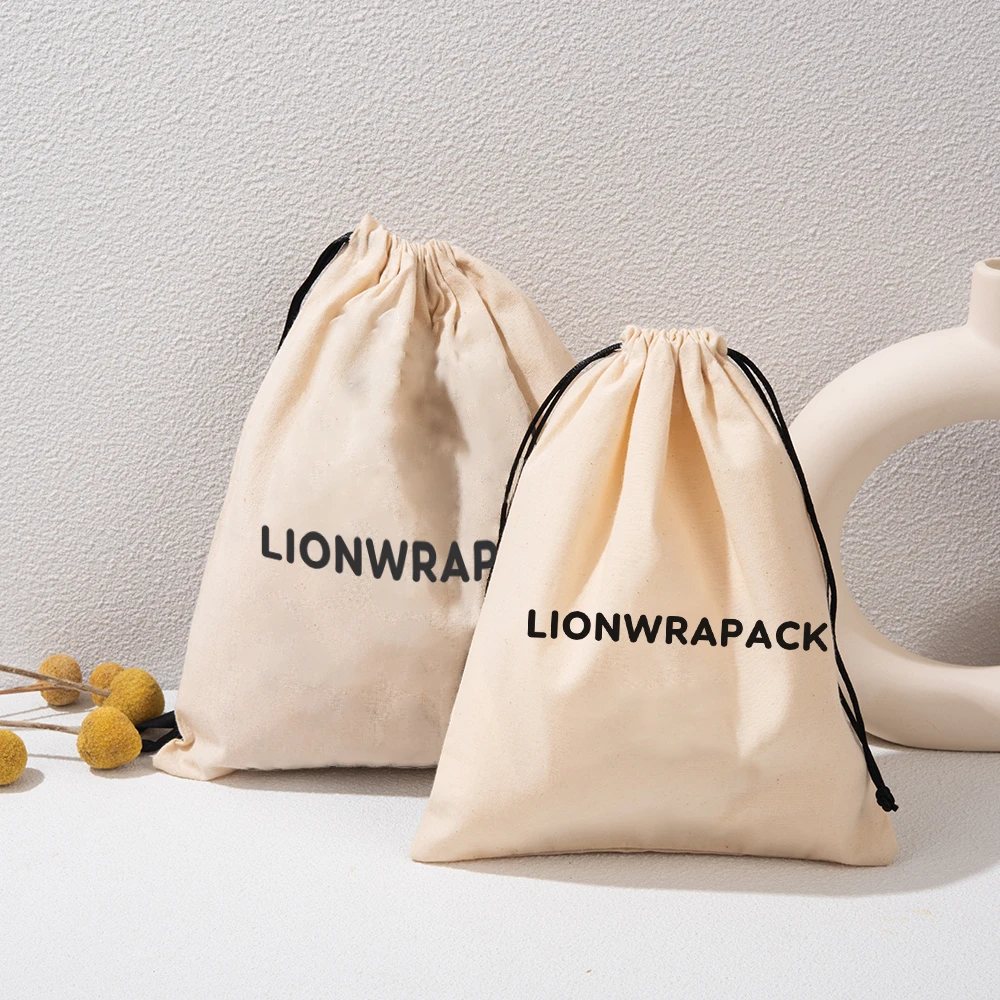 Lionwrapack Custom logo with Label Clothing Shoes Underwear Dust Packaging Bag Cotton Drawstring Bag
